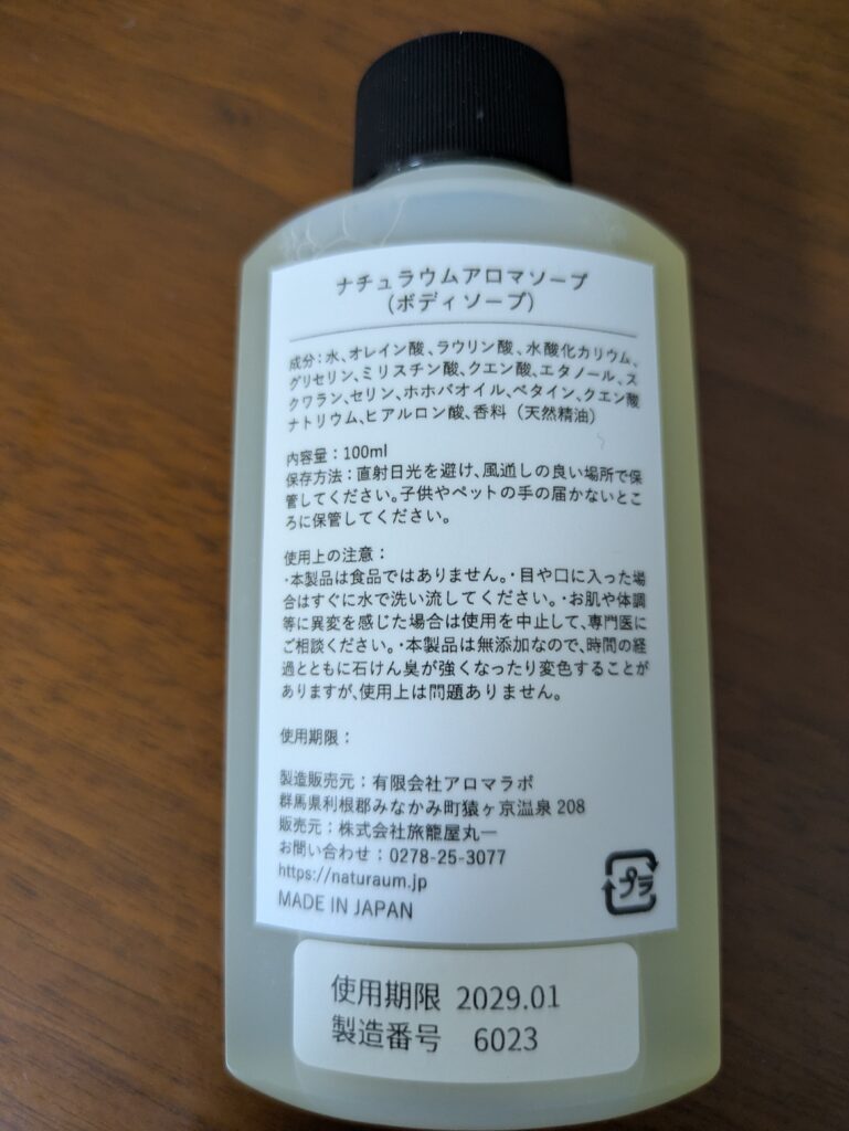 この階では「naturaum(ナチュラウム)」さんの肌と環境へのやさしさを追求したアロマソープに心惹かれて購入✨こちらは小さいサイズ(100ml)で税込1210円しました。