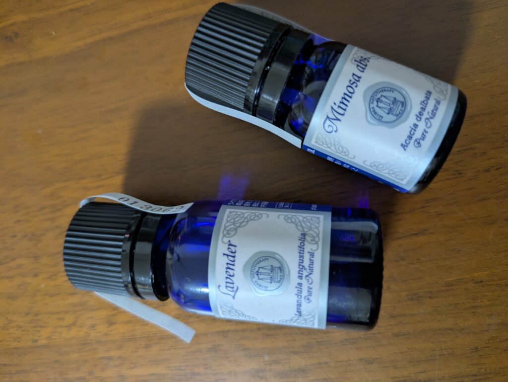 まず私が気になったのは「ライブラナチュテラピー」さんのミモザの精油。ミモザの精油を見るのは初めてで、なんと半額で販売されてラスト1個だったので即購入しました😆ラベンダーも切らしてたので一緒に購入!半額でどちらも税込1200円しました♪